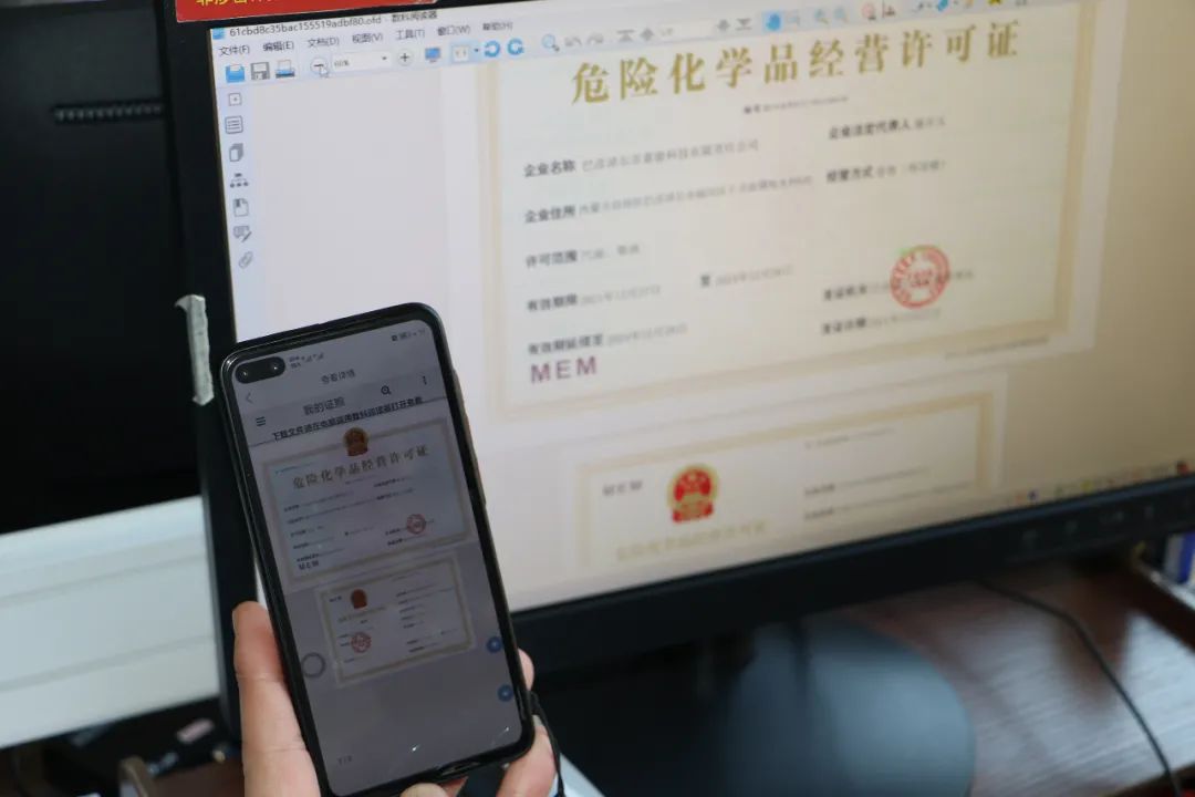 1月4日,在市应急管理局工作人员指导下,临河区某危险化学品经营企业通过蒙速办申领到本企业的危险化学品经营许可证,这标志着我市危险化学品经营许可证全面实现电子证照。